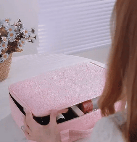 El espejo integrado en la tapa de la cosmetiquera cuenta con luces LED ajustables.🚦 Estas luces proporcionan una iluminación uniforme y brillante