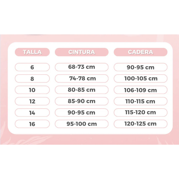 Tallas: 6, 8, 10, 12, 14, 16